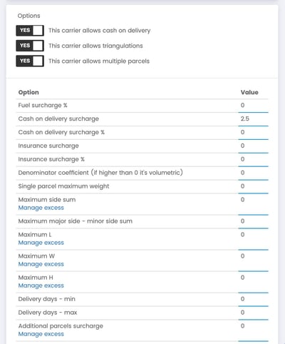 Some carriers require rates to be entered manually in Carriers > Edit Prices.