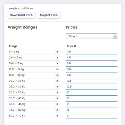 Make sure the weight ranges and prices match so the correct rate can be calculated.