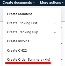 - Select the orders and click Create Documents