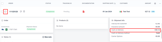 Once set it up, you'll be able to see it in the order details under Cash on Delivery in the Shipped tab:
