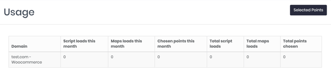 Las 3 últimas columnas muestran le Total de cargas de script, Cargas totales de mapas y Puntos totales elegidos desde el primer uso de Mapas.