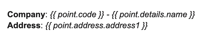 Suivez la configuration ci-dessous pour afficher le Code et le Nom du point de retrait dans le champ Société et l'adresse dans le champ Adresse :