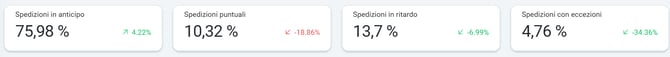 Spedizioni in anticipo, puntuali e in ritardo: rappresentano le prestazioni incentrate sul tempo di transito.