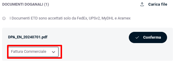 ❓ Errore: SHIPMENTSPECIALSERVICES.ETDDETAIL.NOTAVAILABLE - Electronic trade documents are not available for domestic shipments. Please update and try again.