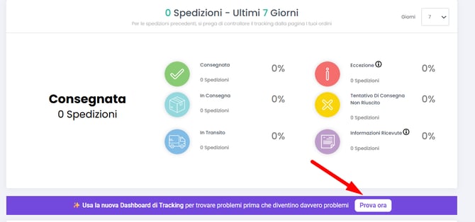 - Qualsiasi spedizione senza aggiornamenti di tracciamento per più di 72 ore viene automaticamente contrassegnata come "A rischio", anche se l'ultimo stato sembrava normale.