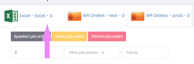 Troverai gli ordini che hai importato con Excel/CSV/TXT direttamente nella sezione vicino ai tuoi Marketplaces: