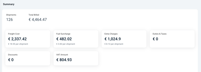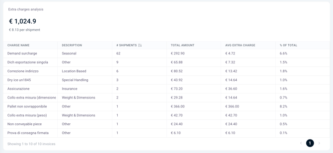 Da Analytics > Analisi fatture, puoi analizzare immediatamente la fattura del corriere e scoprire tutti i costi di spedizione, compresi i costi aggiuntivi che il corriere ha aggiunto.