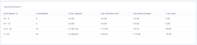 Questo strumento ti aiuta ad analizzare e comprendere in dettaglio i costi di spedizione.
