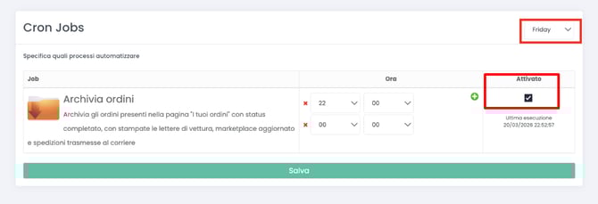 Controlla se hai dei Cron Job settati nella sezione Strumenti > Task Scheduler per l’archiviazione ordini