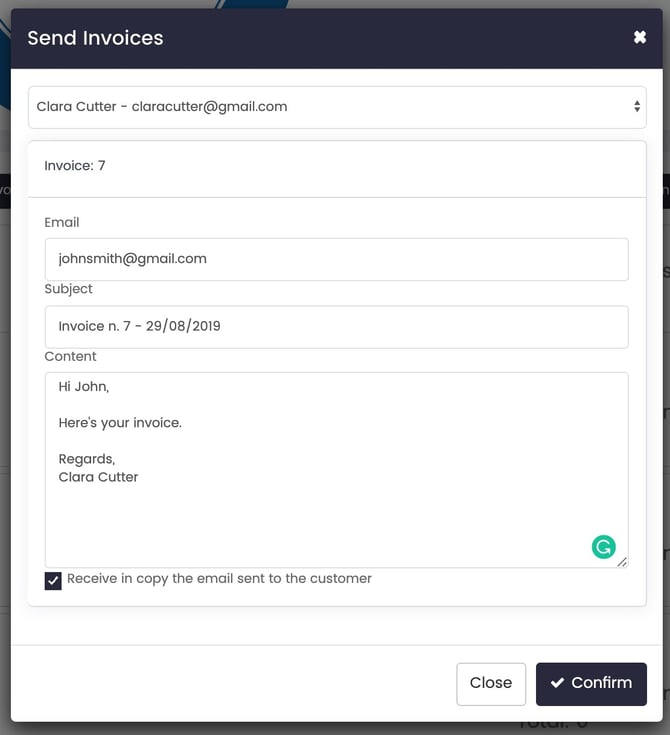 Per inviare più fatture per posta, seleziona tutti gli ordini che desideri includere e clicca su Invia fatture per e-mail.