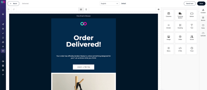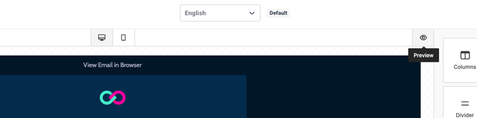 - Preview modes: View how your email looks on desktop and mobile devices by clicking on the Desktop and Mobile icons. You can also access the preview mode by clicking on the Eye icon on the top-right of the template