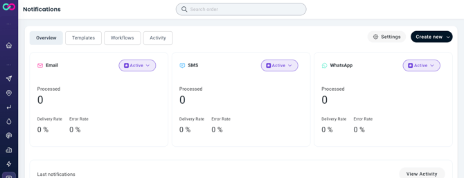 Tabella delle ultime notifiche — Visualizza le notifiche e-mail più recenti, il loro stato di consegna e i dettagli. Ciò ti offre una visibilità completa sulle comunicazioni recenti inviate ai tuoi clienti.